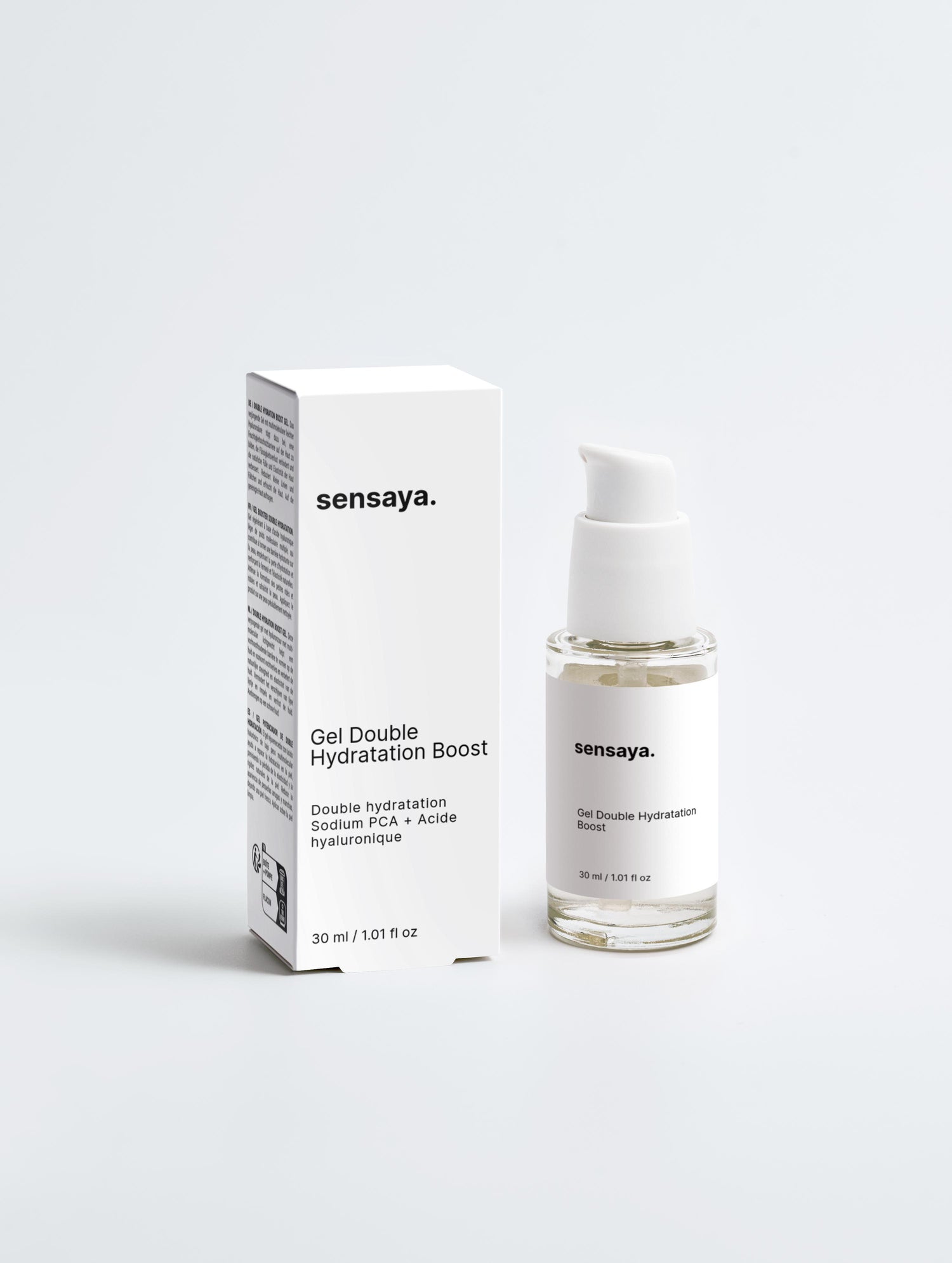 - Gel Booster Double hydratation : Un gel rafraîchissant à base d'acide hyaluronique à poids moléculaire multiple qui emprisonne l'hydratation et améliore la fermeté naturelle de la peau.
